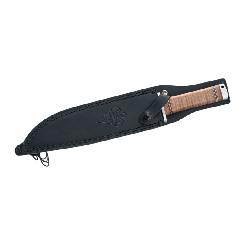 The Fällkniven NL1L Thor is the largest and most powerful knife in the Northern Lights series. Crafted in Sweden, it features a robust laminated VG10 steel blade for exceptional strength and edge retention. The stacked leather handle provides a secure and comfortable grip, even in harsh weather. Each knife is handmade and individually tested, ensuring the highest quality. Delivered with a high-grade leather sheath, the NL1L Thor is the ultimate tool for survivalists, hunters, and professionals who demand absolute reliability.